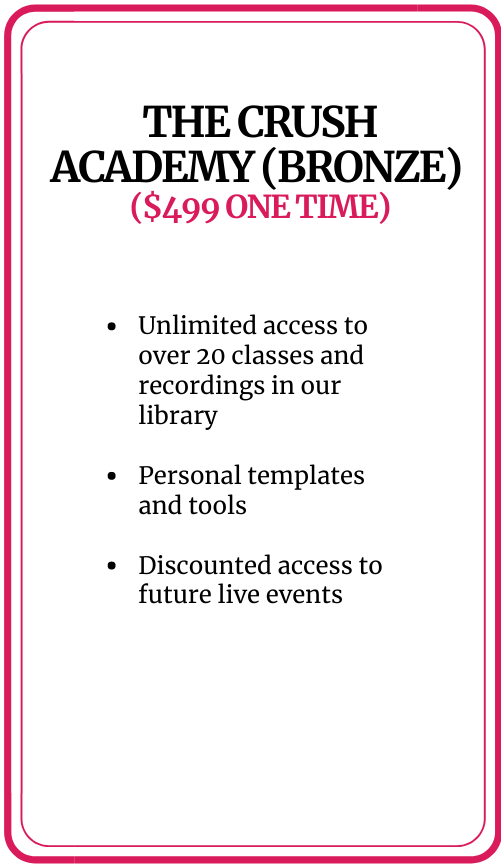 No more guesswork. You will master your new CRUSH money blueprint to: